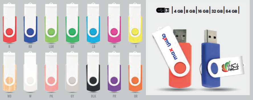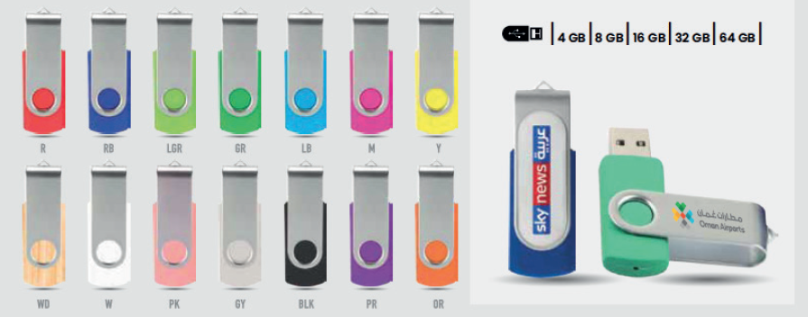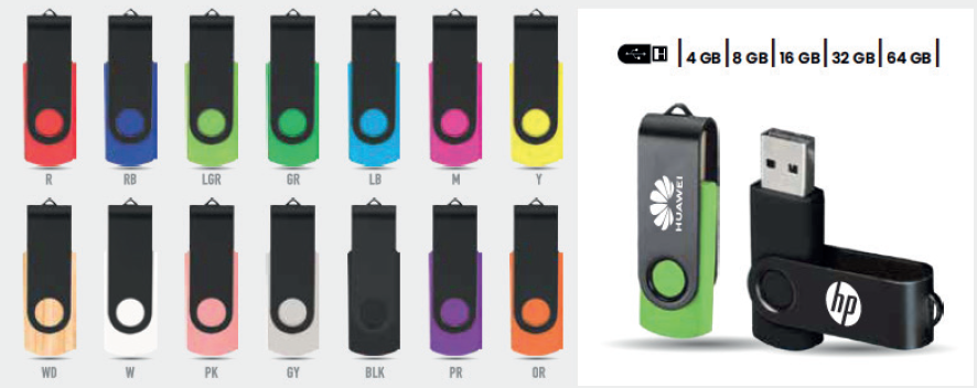 The Twister USB contains an aluminium clip which you can easily swivel, making it impossible to lose the lid – it is simply suitable for everyone! Memory sizes start at 8GB and range up to a massive 64 Gb. You can have up to 4 spot colours printed on either one or both sides and data upload is also available to everyone.