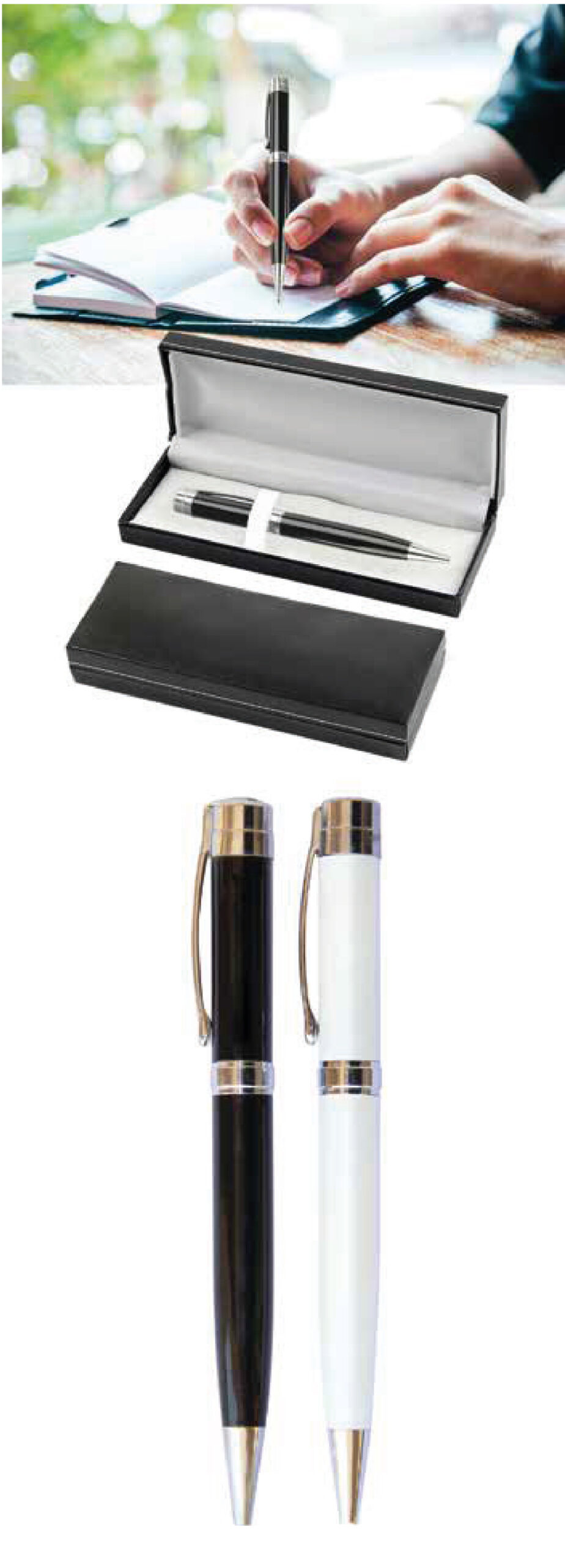 Metal Twist Action Pens Black and White Great office gift or service award.