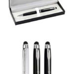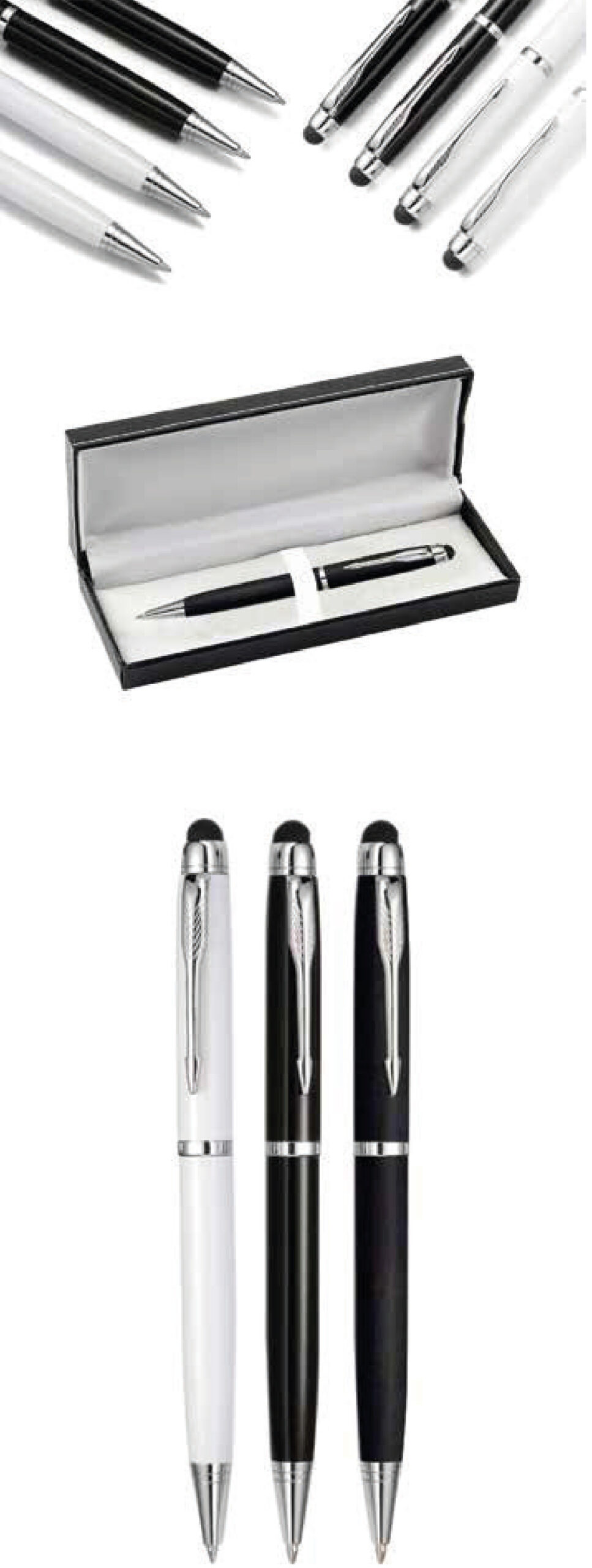 Metal Pen With Stylus Multi-function slim ballpoint pen with stylus for touch screen devices. (black, white, black matt finish).