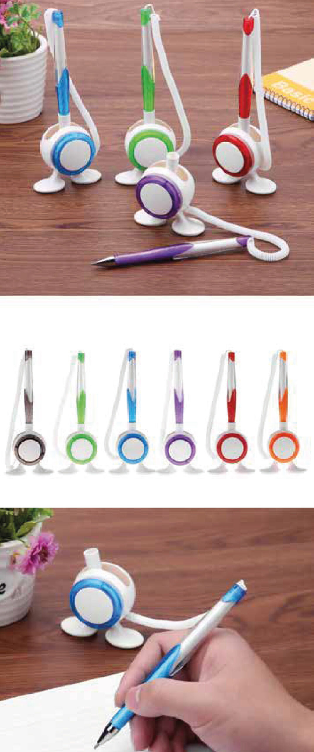 Plastic Table Ball Pen Stick The stand and tape is designed to be attached on to desk and counter tops. This will prevent the pen from easily being removed or lost from your workspace, ensuring that your pen will stay within your reach.