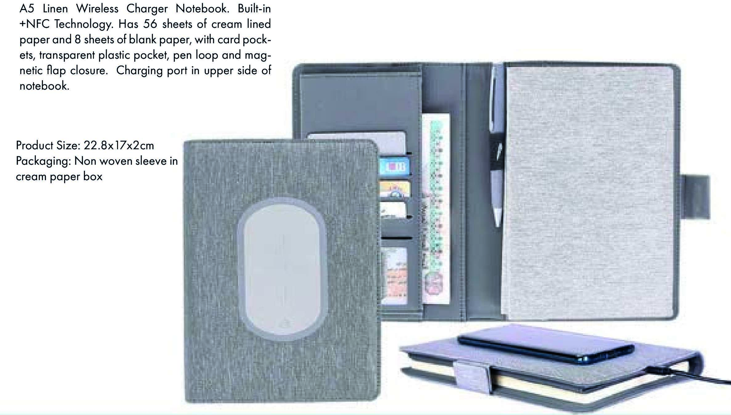 The Charge Note is a smart notebook with an integrated wireless charging pad for ultimate convenience. Perfect for professionals, it lets you take notes while keeping your devices powered up on the go.