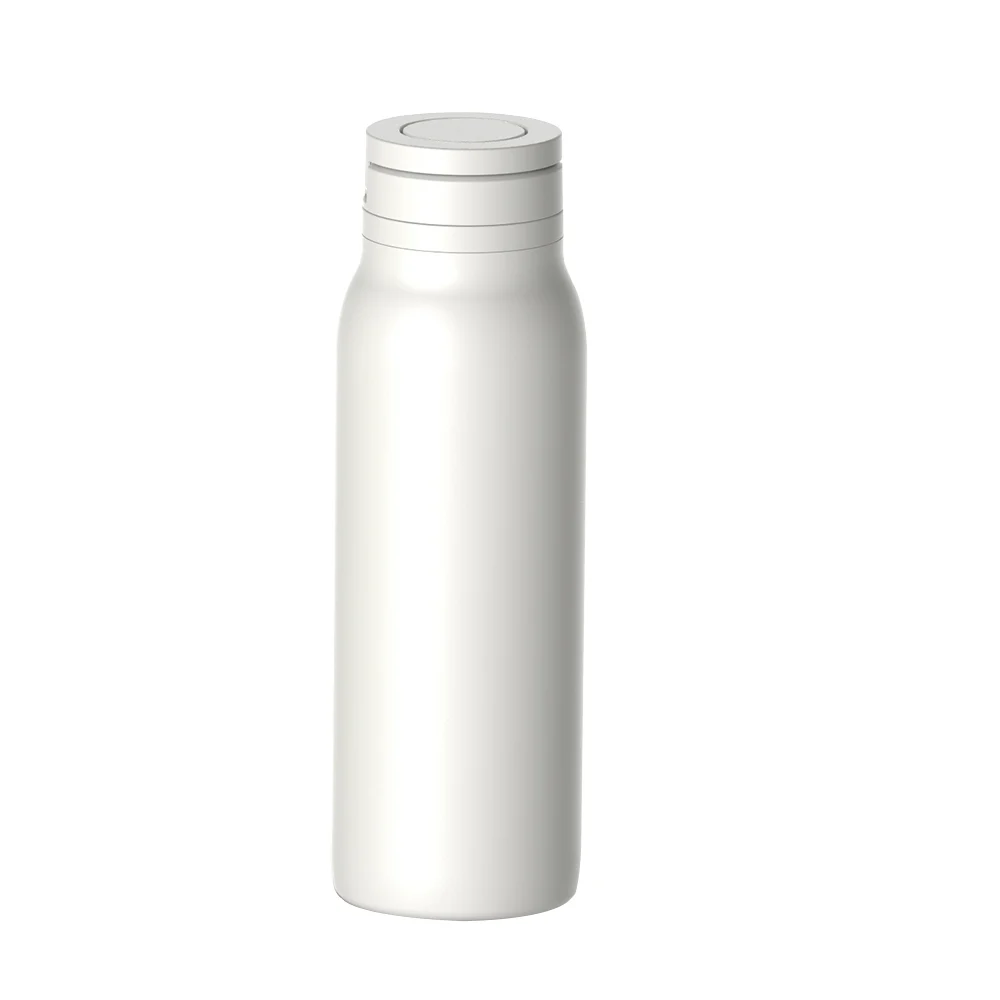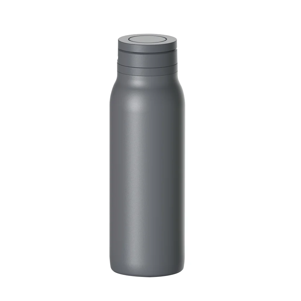 The bottle’s wide mouth allows for quick cleaning and accommodates ice cubes for refreshing cold beverages. Its sleek powder-coated finish enhances grip and adds a modern touch, while the silicone base ensures stability and protects surfaces.