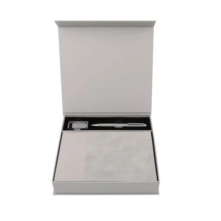 A sophisticated gift box that includes a beautifully crafted notebook, a sleek metal pen, and a stylish metal bookmark with a calendar. This classy set is perfect for anyone who appreciates organization and elegance in their daily life.The AGENDA GIFT SET is not only functional but also makes an outstanding gift for colleagues, friends, or loved ones. The notebook provides ample space for notes and ideas, while the metal pen adds a touch of luxury to your writing experience. The included bookmark ensures you never lose your place in important documents or books. Packaged in an attractive box with sleeves, the AGENDA SET is ready to impress right out of the box. With dimensions of 21.2 x 22.3 x 4.6 cm, it’s perfectly sized for any desk or workspace.