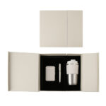 Presented in a premium leather box, the COZY SET combines timeless design with everyday functionality, making it an ideal gift for professionals, clients, or anyone who appreciates refined stationery and drinkware. Compact enough for easy handling, the set measures 28 x 24 x 9.69 cm and comes packaged in a recyclable paper sleeve.