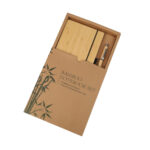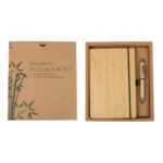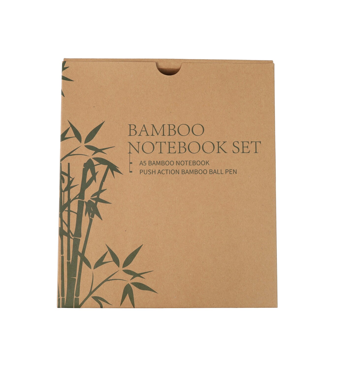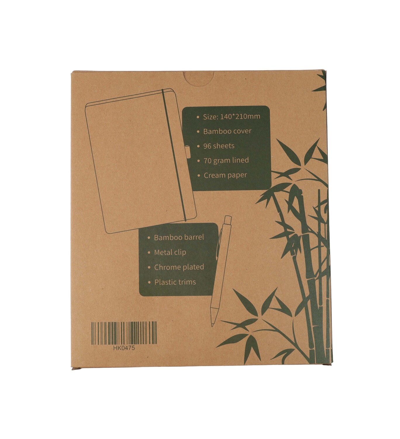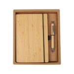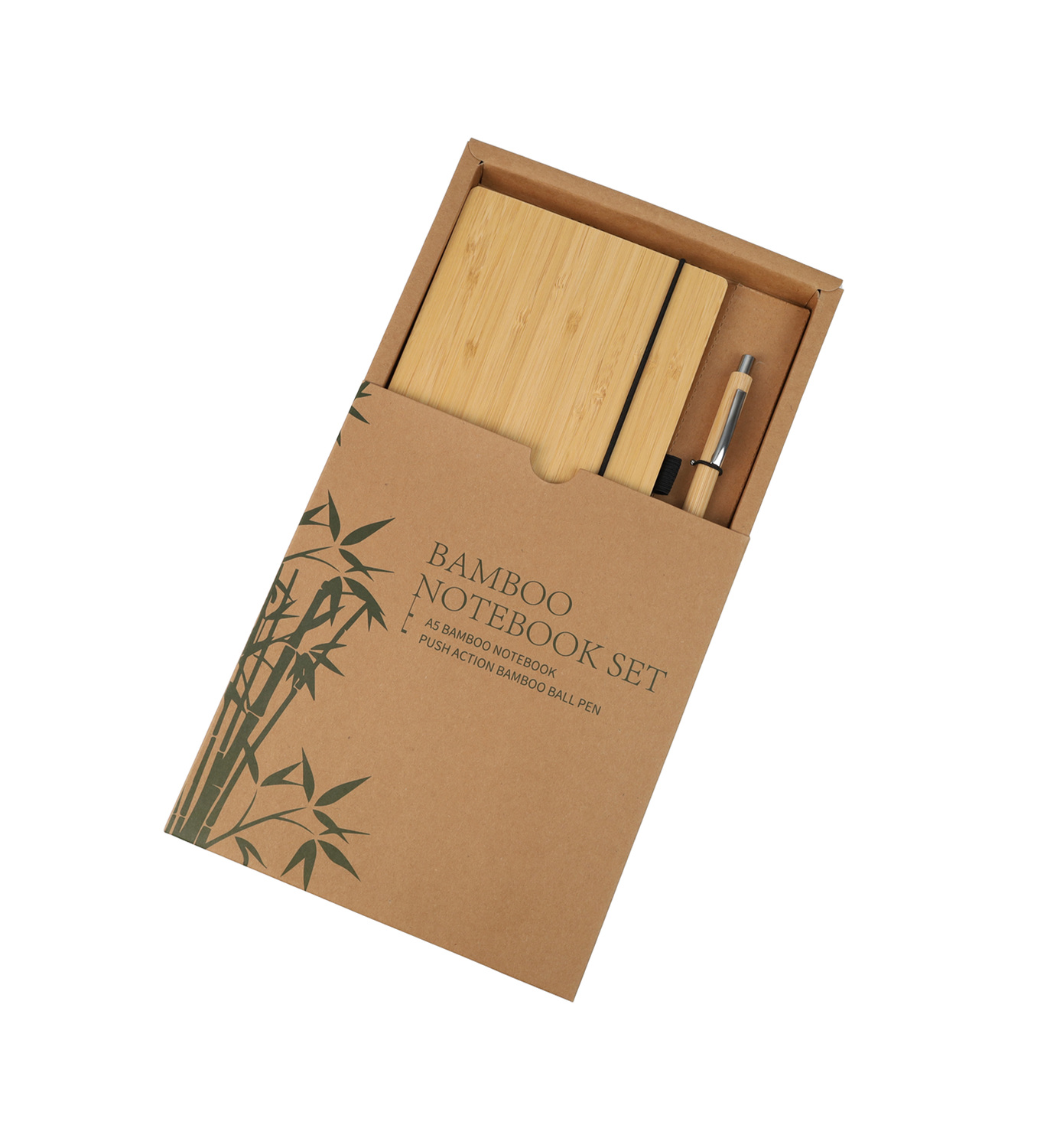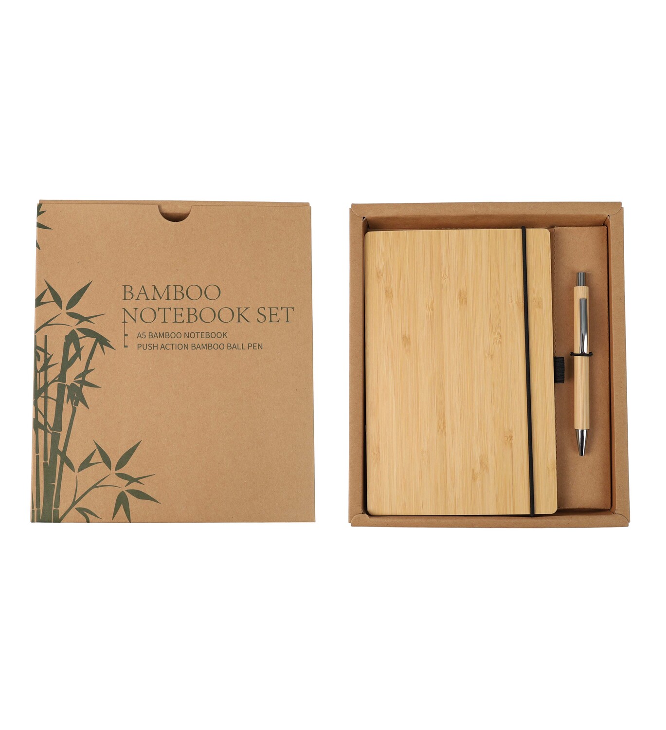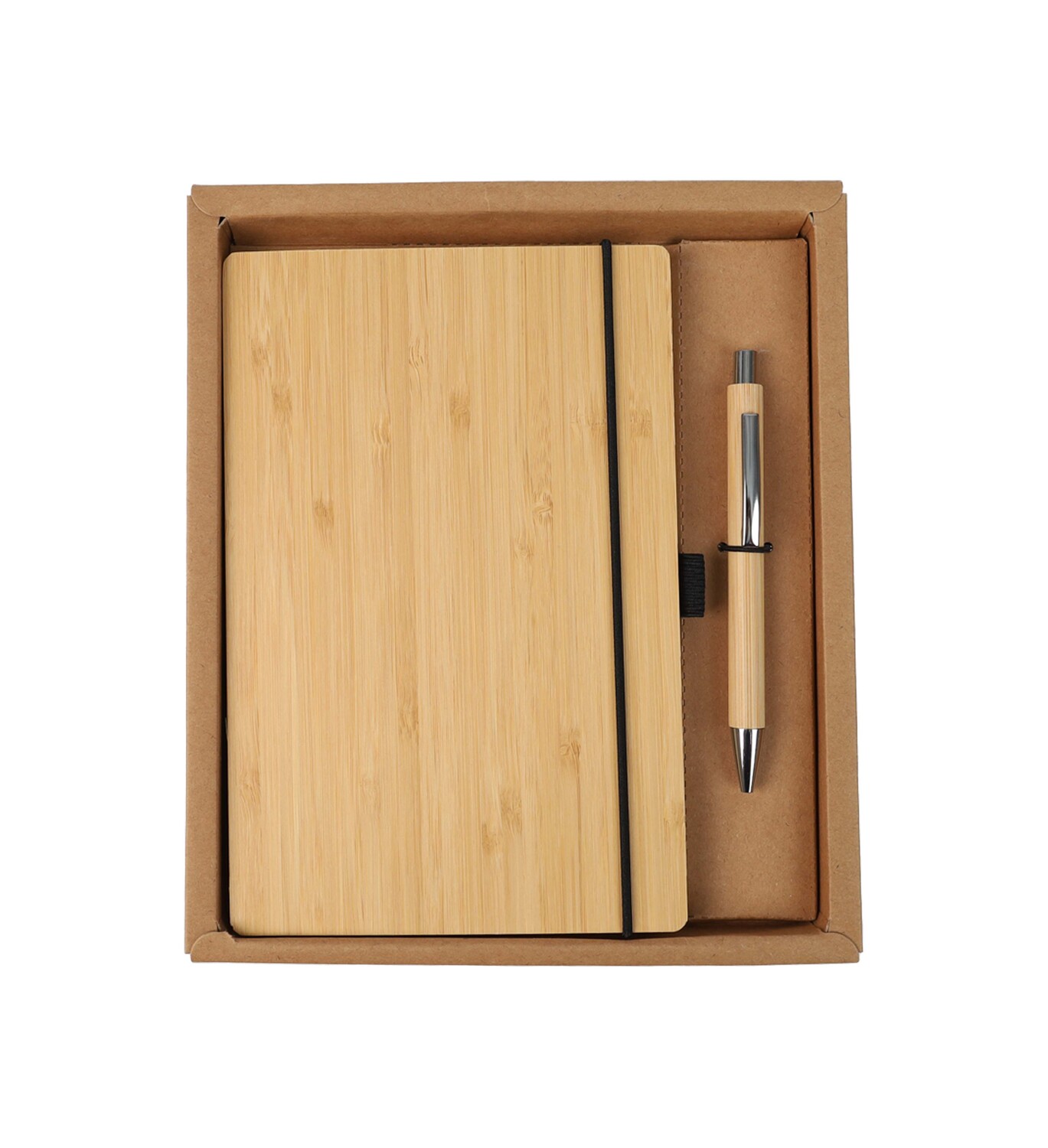 A corporate gift set that consists of an A5 bamboo notebook with 96 70g single-lined cream sheets, elastic closure and pen loop. The corporate gift kit also comes with a push-action pen with a bamboo barrel, metal clip and chrome-plated plastic trims.