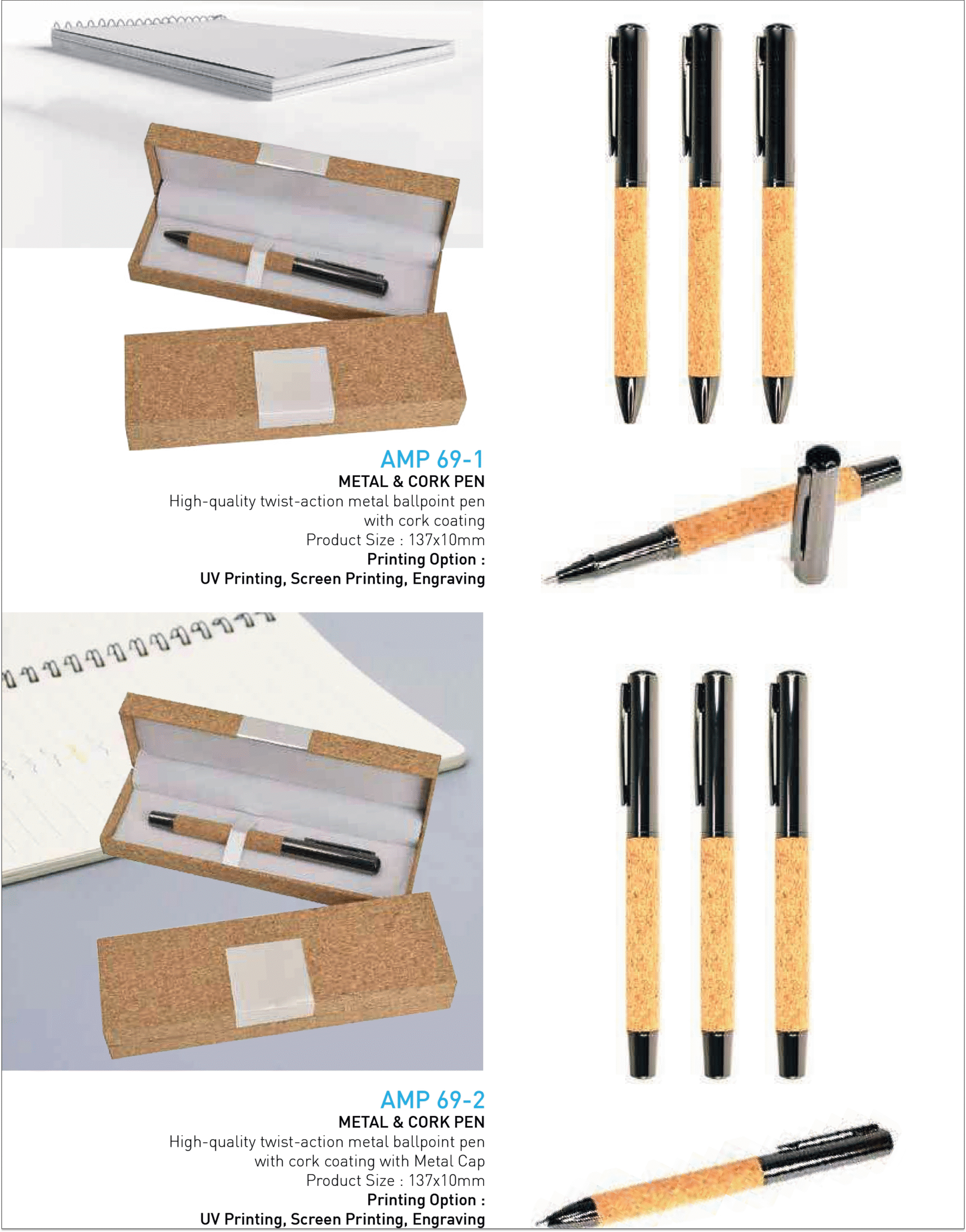 The Metal and Cork Pen blends durability with eco-friendly design, featuring a sturdy metal body and a natural cork grip for a comfortable writing experience. Stylish and sustainable, it’s perfect for everyday use.