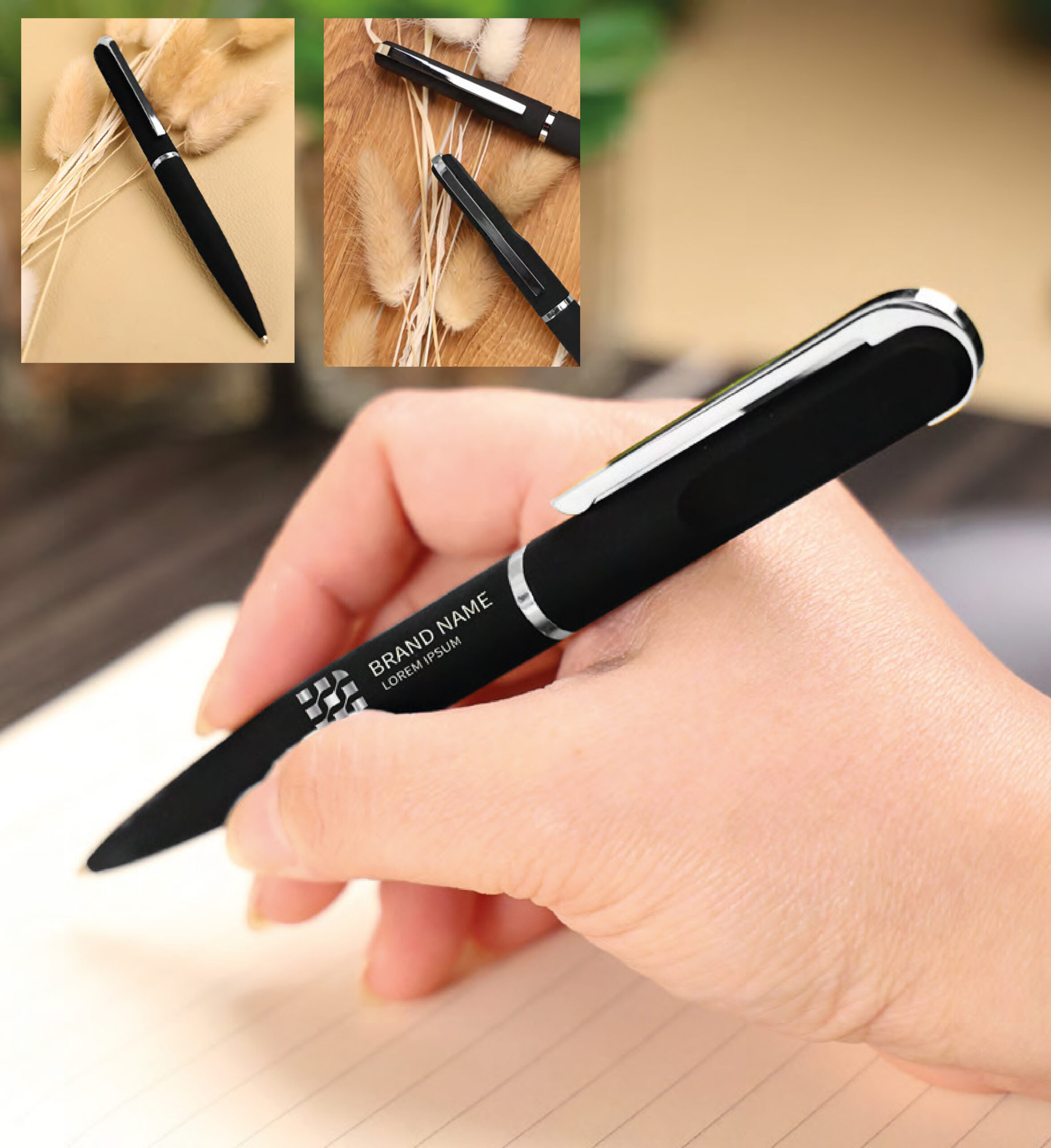 Stainless and abs pen with rubberized coating, chrome clip and plating under.