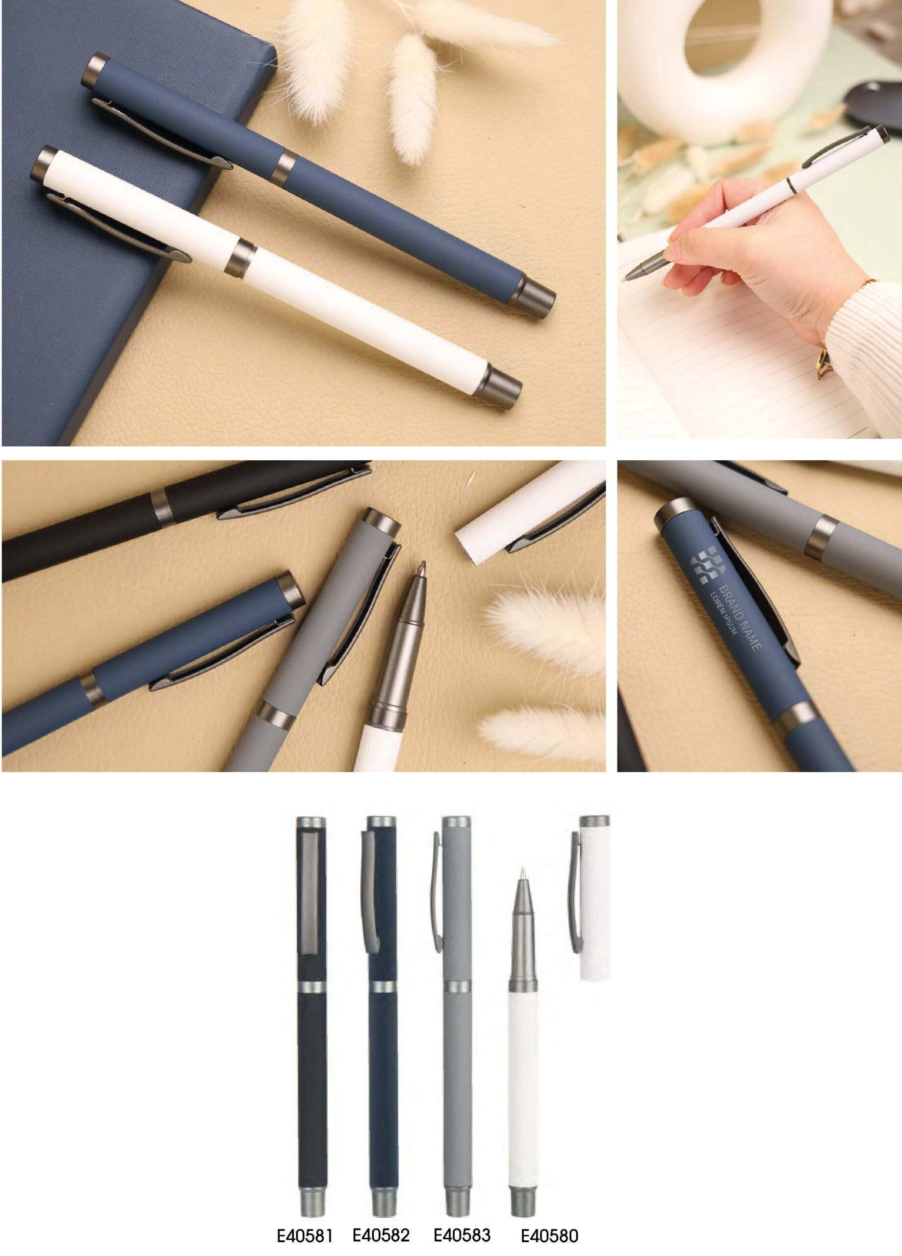Slim roller metal pen with rubberized finishing. Has 0.7mm rollerball refill.
